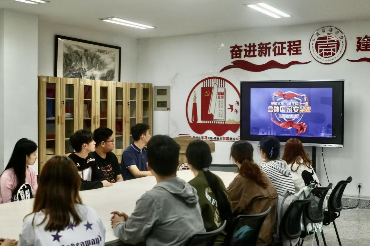 各班级在教室集中收看思政大课直播,同学们全神贯注、认真聆听,紧跟课程节奏,深入学习总体国家安全观的丰富内涵、核心要义与时代意义,在沉浸式学习中感悟国家安全与个人成长、国家发展的紧密联系,进一步树立“国家安全,人人有责”的责任意识。党员、入党积极分子及学生干部代表在党员活动室开展集中学习观看活动,充分发挥党团组织的示范引领作用,引导骨干力量先学一步、学深一层。活动现场学习氛围浓厚,师生们结合课程内容,围绕“如何践行总体国家安全观”“青年一代如何守护国家安全”等话题展开热烈讨论,交流学习心得、凝聚思想共识。